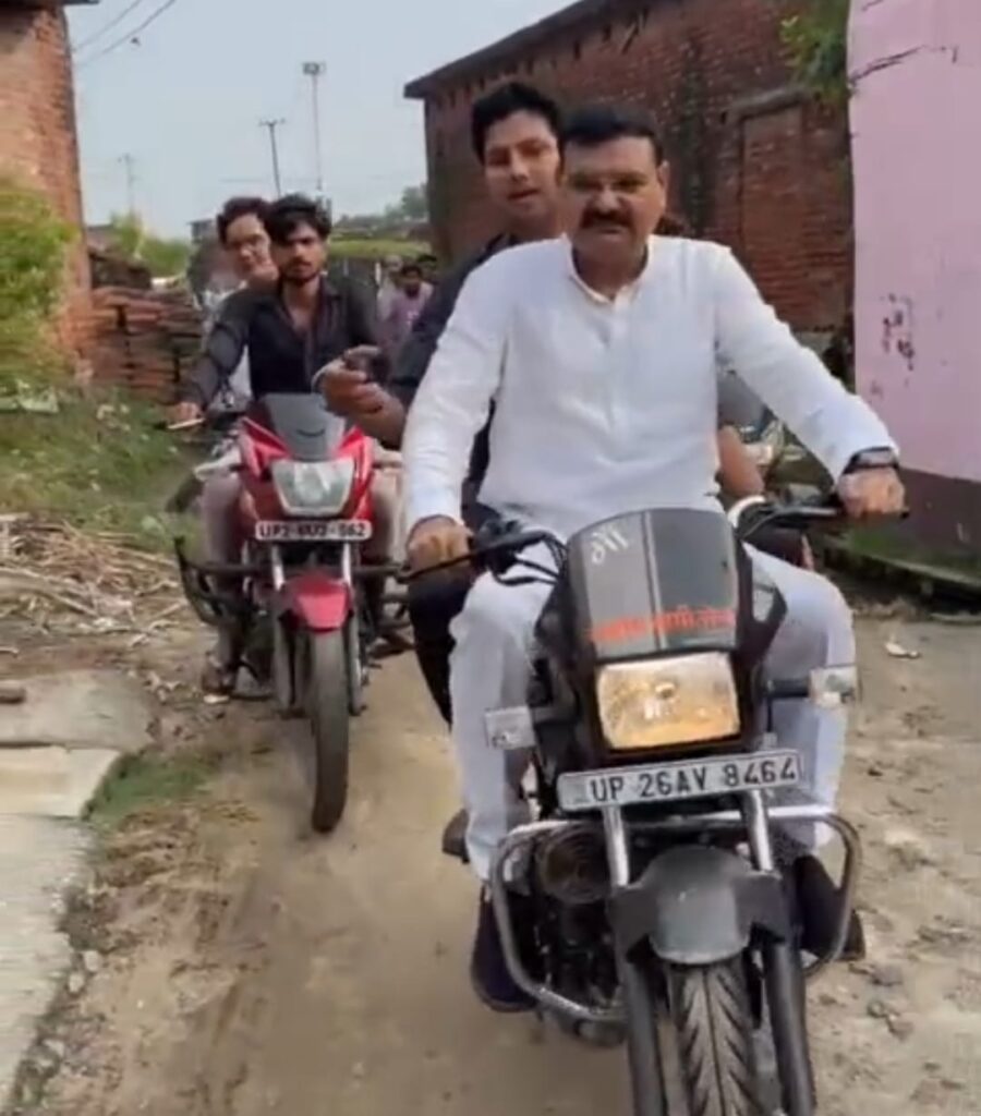 जनता के लिए काफिला छोड़ बाइक पर सवार हुए योगी के मंत्री संजय गंगवार